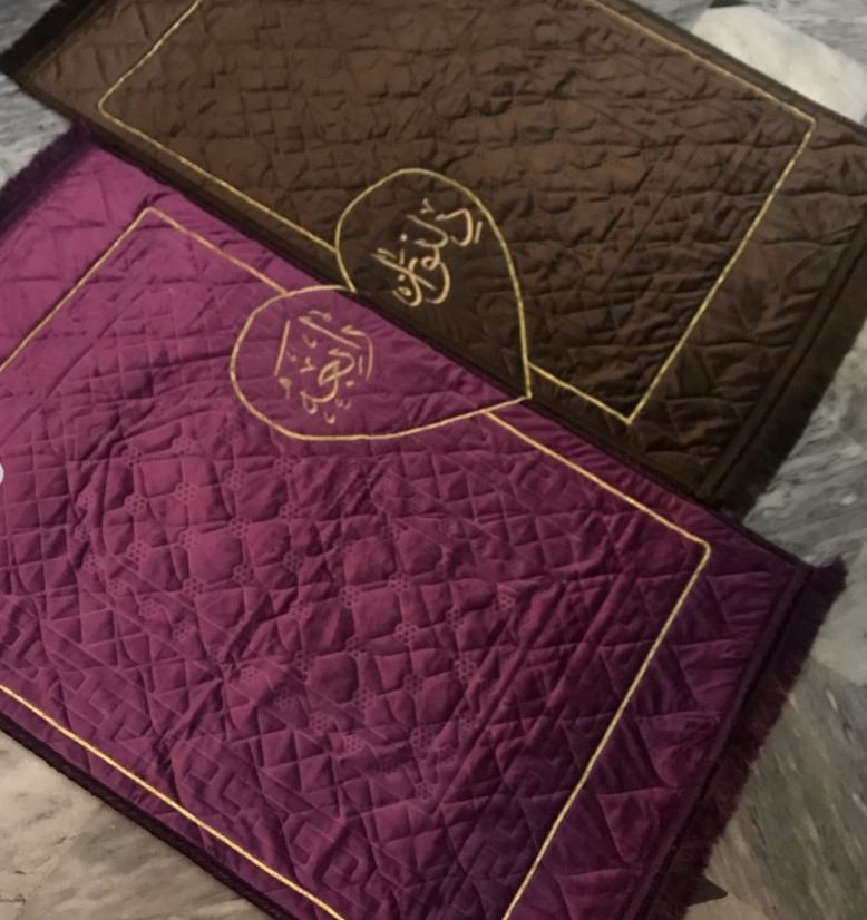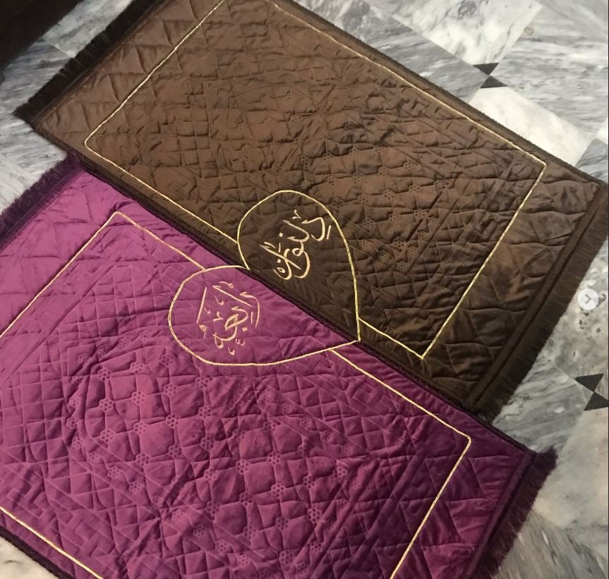 now introducing the best grade prayer mats with neat Calligraphy especially for couples, where you will get heart and borders with Customized names. The foam Prayer Mats are best for wedding gifts anniversary gifts and couple gifts in Pakistan.